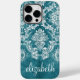 Turquoise Grungy Damask Pattern Custom Text Case-Mate iPhone Case