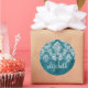 Turquoise Grungy Damask Pattern Custom Text Classic Round Sticker