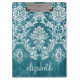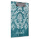 Turquoise Grungy Damask Pattern Custom Text Clipboard
