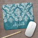 Turquoise Grungy Damask Pattern Custom Text Mouse Pad
