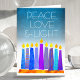 Turquoise Hanukkah Boho Candles Peace Love Light Holiday Card
