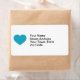 This mailing label features a shapely turquoise heart.