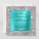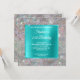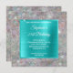 The overlay features a square bright aqua blue turquoise ombre foil for her invite information.