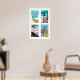 Turquoise Japanese Matchbox Labels Grid Print, Vintage Ephemera Poster, East Asia Collection, Midcentury Style, turquoise wall art 1