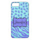 Turquoise Lavender Zebra Leopard Name Personalized Case-Mate iPhone Case