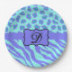 Turquoise Lavender Zebra Leopard Skin Monogram Paper Plate