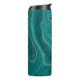 Turquoise liquid marble background with gold thermal tumbler