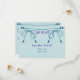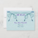 A simple but elegant wedding Save the Date card, done up on a pale turquoise background with a love knot in turquoise and purple beads.