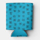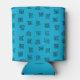 This can cooler has a mid-century modern design of scattered mazes on a field of turquoise.