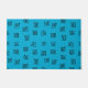This doormat has a mid-century modern design of scattered mazes on a field of turquoise.