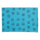 This pillowcase has a mid-century modern design of scattered mazes on a field of turquoise.