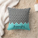 Turquoise mint with black and white Chevron Custom Throw Pillow