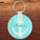 Turquoise blue nautical boat anchor keychain with name. Maritime theme design with navy sailing ship anchor. Personalizable gift for friends and family.