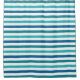 A preppy and modern striped shower curtain with a teal, turquoise, and navy blue stripes pattern. Ideal for a nautical themed bathroom.