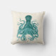 Turquoise Octopus Illustration on Cream Throw Pillow