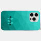 Turquoise teal geometric mesh pattern Monogram iPhone 15 Case. Personalize with your custom initial and name. Triangle geometric mesh with light to dark turquoise ombre gradient.