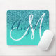 Turquoise Ombre Teal Faux Glitter Monogram Mouse Pad