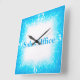 Elevate your office decor with this stylish square acrylic clock. Featuring a pristine white background framed by a sparkling turquoise glitter border, it prominently displays your personalized monogram at the centre. Ideal for small businesses, this elegant clock combines functionality and sophistication, making it a perfect addition to your professional workspace.