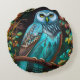 Turquoise owl round pillow