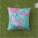 Turquoise Pink Abstract Hawaiian Flowers Outdoor Pillow