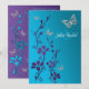 This pretty Bat Mitzvah invitation in turquoise blue and purple floral has a variety of silvertone butterflies and a pale blue Jewish Star of David on the front with the Bat Mitzvah's name across the star in white lettering. The back side of this lovely Bat Mitzvah invitation is in purple tones with teal and turquoise flowers and vines on it, along with more silvertone butterflies. The text is in a mix of light blue and white and it also includes a Hebrew name. The backside has optional reception wording, or you can purchase a separate reception enclosure card and use the reception text as RSVP wording instead. If you need any additional items, please send me a chat message or email me at niteowlstudio@gmail.com and watch your spam/junk folder for my reply.