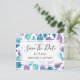 Turquoise Purple Leaves Wedding Save The Date Announcement Postcard
