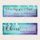 En utilisant une police de script magnifique et ornée, j'ai créé des éléments de typographie pour les mots "laissez-nous vous acheter un verre" d'un côté et "applaudissements" de l'autre. Tous les autres textes sont rendus ici dans une police serif polyvalente qui peut aussi être facilement modifiée selon vos souhaits. La copie de l'espace réservé avant indique "Good for One Adult Beverage" et l'arrière a une place pour vos noms. L'arrière - plan est décoré d'une élégante image claire, violette et turquoise, sombre, brillante, brillante de reflets de bokeh. Pour décaler le texte et le faire apparaître un peu plus audacieusement, j'ai ajouté un masque blanc partiellement opaque qui crée un effet de bordure agréable autour des bords. Tous les calques sont déverrouillés afin que vous puissiez modifier et personnaliser cette carte à thème mariage hautement personnalisable selon vos besoins. // N'hésitez pas à contacter si vous avez besoin d'aide pour customiser cette carte ou si vous avez des demandes spéciales pour des pièces supplémentaires. // 19 //