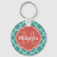 Turquoise Quatrefoil Pattern Coral Monogram Keychain