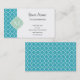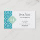 Turquoise Quatrefoil Pattern with Monogram Business Card
