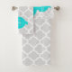 Turquoise Quatrefoil Personalized Bath Towel Set