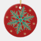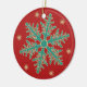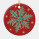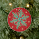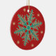Turquoise Red Gold Christmas Snowflake Ceramic Ornament