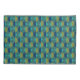 This pillowcase has a mid-century modern design of ovals in teal with semi-circles in green and navy inside them on a field of turquoise.