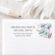 Turquoise rose gold stylized lily flower full names as an addition to the casual first names only wedding invitation.