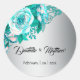 Turquoise Roses on Silver Wedding Classic Round Sticker