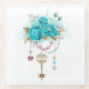 Antique gold key with trendy turquoise roses decorated with leaves of white gold and pink and blue beads. Fashionable colour. Turquoise roses. White gold. Blue tiffany.