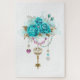 Antique gold key with trendy turquoise roses decorated with leaves of white gold and pink and blue beads. Fashionable colour. Turquoise roses. White gold. Blue tiffany.