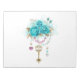 Antique gold key with trendy turquoise roses decorated with leaves of white gold and pink and blue beads. Fashionable colour. Turquoise roses. White gold. Blue tiffany.