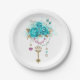 Turquoise Roses with Keys Paper Plate