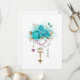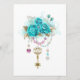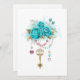 Antique gold key with trendy turquoise roses decorated with leaves of white gold and pink and blue beads. Fashionable colour. Turquoise roses. White gold. Blue tiffany.