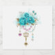 Antique gold key with trendy turquoise roses decorated with leaves of white gold and pink and blue beads. Fashionable colour. Turquoise roses. White gold. Blue tiffany.
