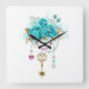 Antique gold key with trendy turquoise roses decorated with leaves of white gold and pink and blue beads. Fashionable colour. Turquoise roses. White gold. Blue tiffany.