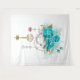 Antique gold key with trendy turquoise roses decorated with leaves of white gold and pink and blue beads. Fashionable colour. Turquoise roses. White gold. Blue tiffany.