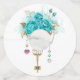 Antique gold key with trendy turquoise roses decorated with leaves of white gold and pink and blue beads. Fashionable colour. Turquoise roses. White gold. Blue tiffany.