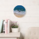 Amazing photograph of a beautiful sandy beach and sea. This clock will help you visualize your next vacation with its light brown, ochre, white and blue colours.