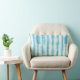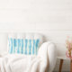 A contemporary shibori patterned pillow in shades of turquoise.