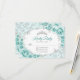 Turquoise and silver floral Quinceanera RSVP reply card. Features, script font, silver butterflies, watercolor roses and tiara. Perfect for an elegant princess style glam celebration. Personalize with your own details.