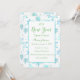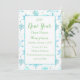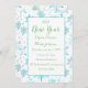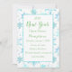 A festive New Year Open House invitation decorated with watercolor snowflakes in a variety of turquoise blue shades and a speckle background for falling snow.