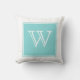 Add your initials or other text to customize this simple and modern Square Monogram Throw Pillow in turquoise and white. This trendy and chic pillow would add a classic touch to any decor or make a perfect gift.