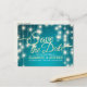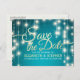 Turquoise String Lights Gold Script Save the Date Announcement Postcard