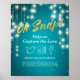 Oh Snap Social Media Hashtag Wedding Decor Poster Templates - Elegant Faux Gold Foil Lettering Script and Vintage String Lights with Turquoise Blue Glitter Sparkle Background.